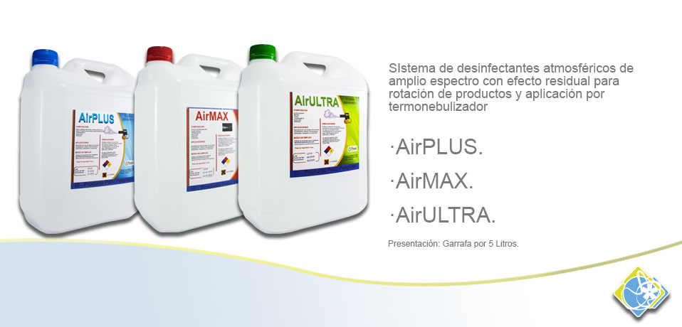 Sistema de desinfectantes atmosféricos de amplio espectro con efecto residual para rotación de productos y aplicación por termonebulizadora. Sistema Air: