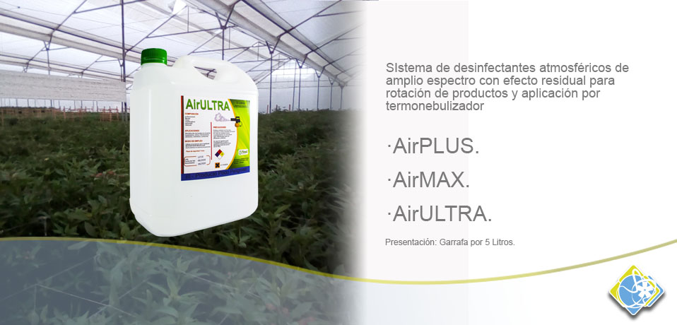 AirULTRA es un desinfectante atmosférico de amplio espectro con poder residual de protección por depósito en superficies, indicado en los sectores clínico-hospitalarios, Farmacéutico, Ornamentales y de alimentos.